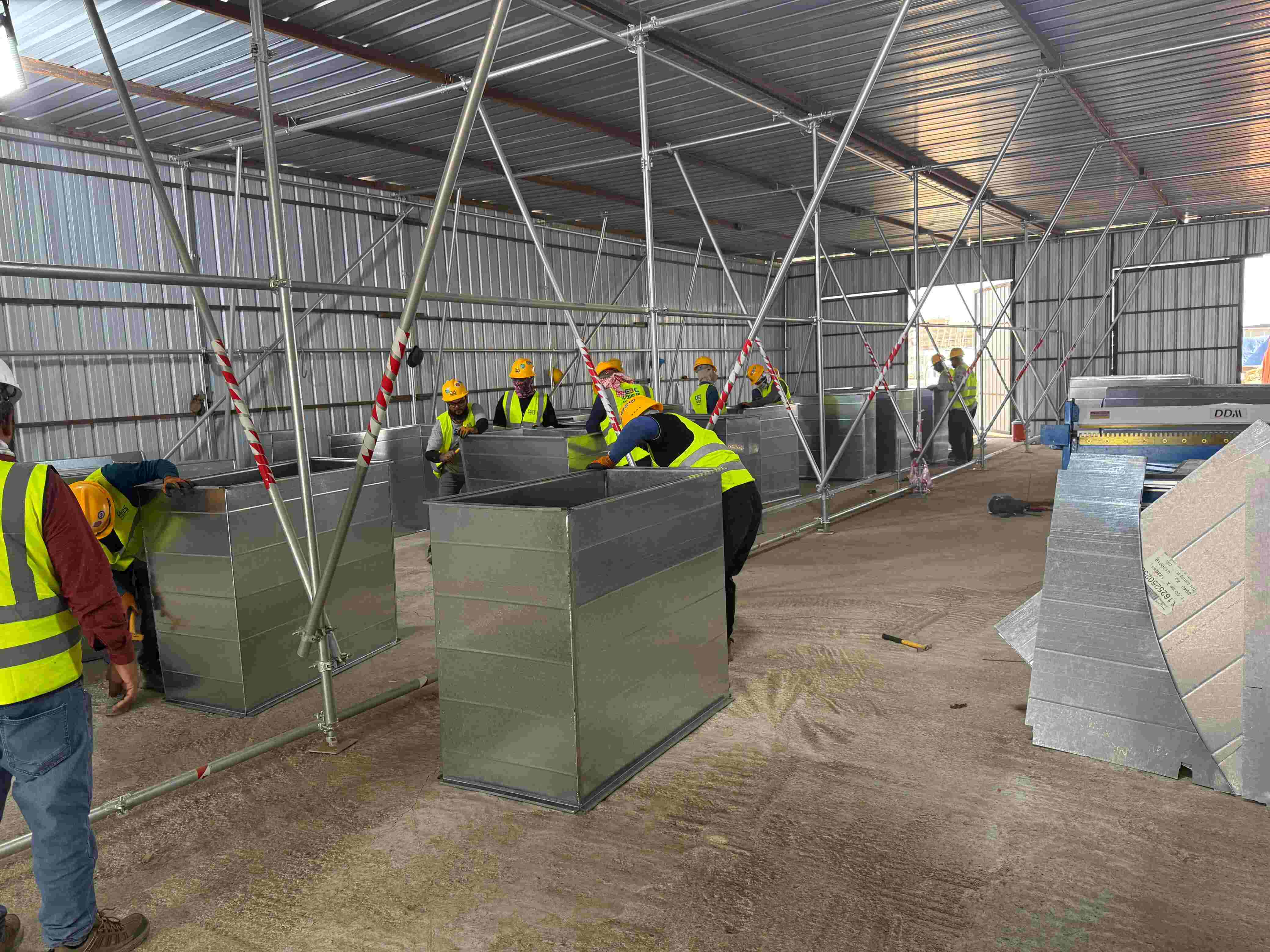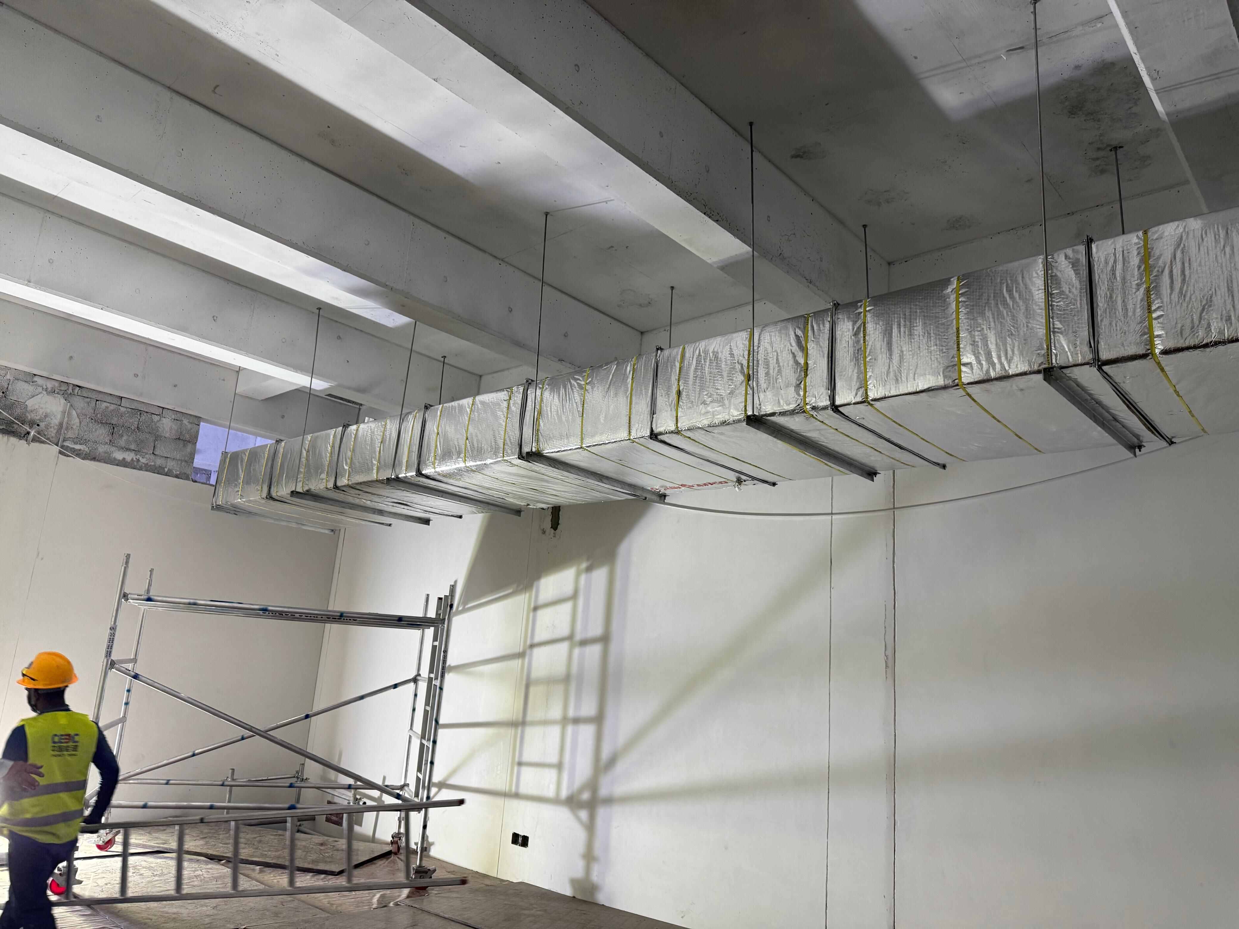لضمان تنفيذ عالي الجودة وفعّال، قامت فرقنا بنقل جميع آلات تصنيع المجاري اللازمة والكوادر الفنية ذات الخبرة إلى الموقع. ونجحنا في إتمام تصنيع وتركيب أكثر من ٨,٠٠٠ متر مربع من مجاري التكييف (HVAC)، والتي شملت: